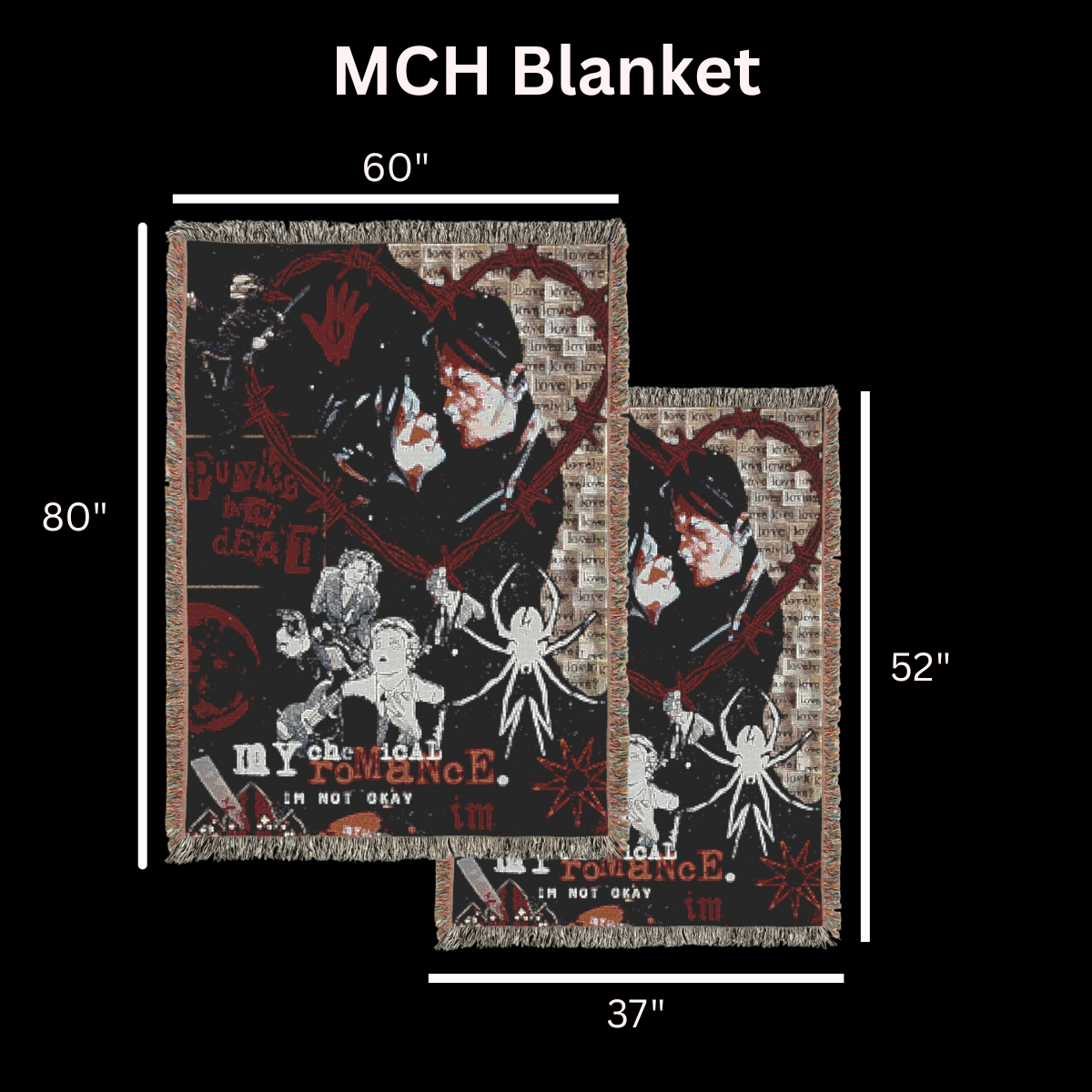 Inspired by The Black Parade and the era that defined a generation — this hand-woven piece captures heartbreak, nostalgia, and rebellion in every thread. Perfect for fans who still wear their scars like art. 🕯️